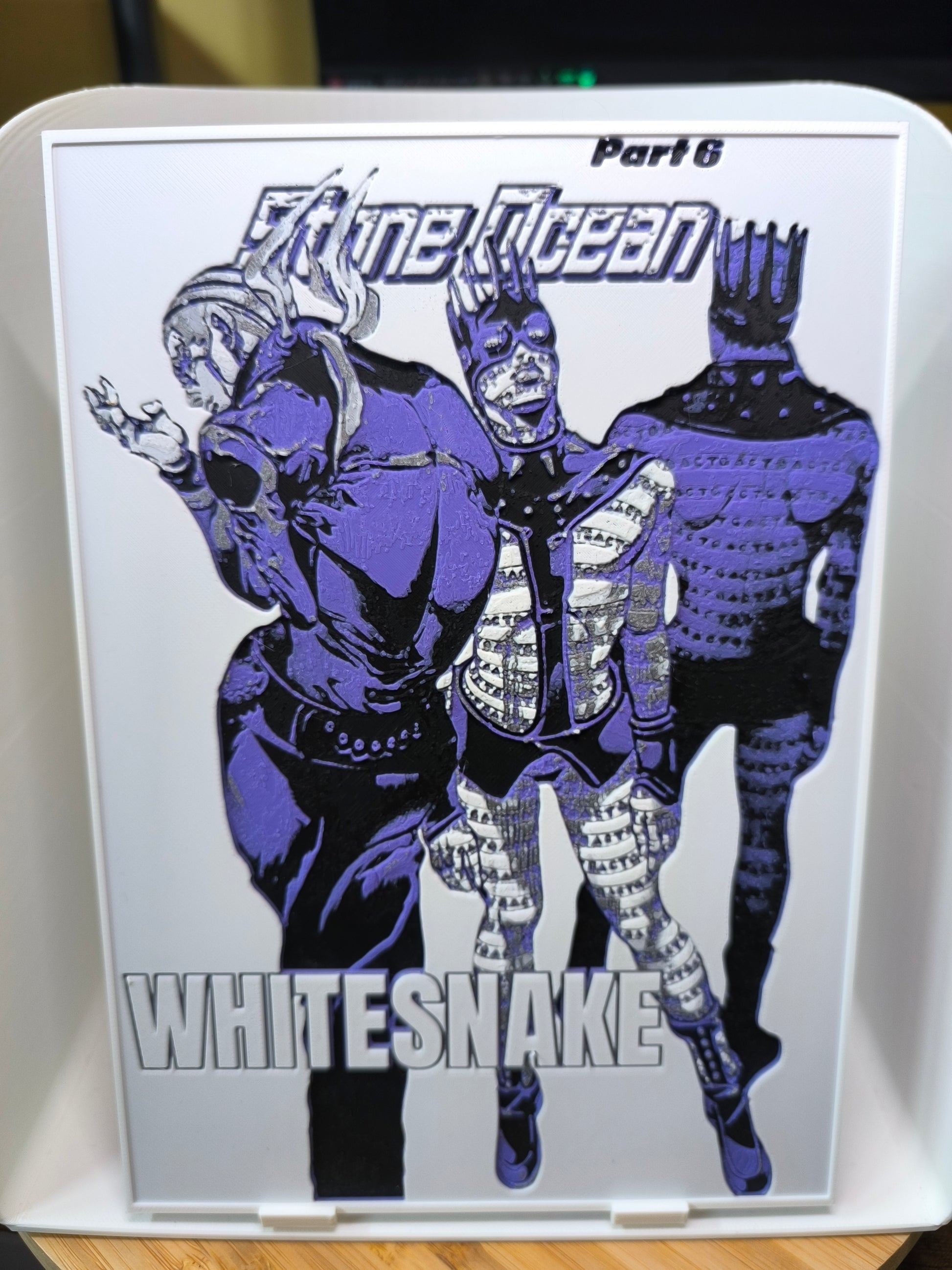- Texte "PART 6 - STONE OCEAN - WHITESNAKE" intégré au design