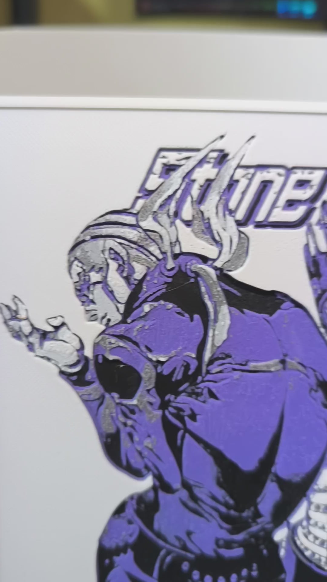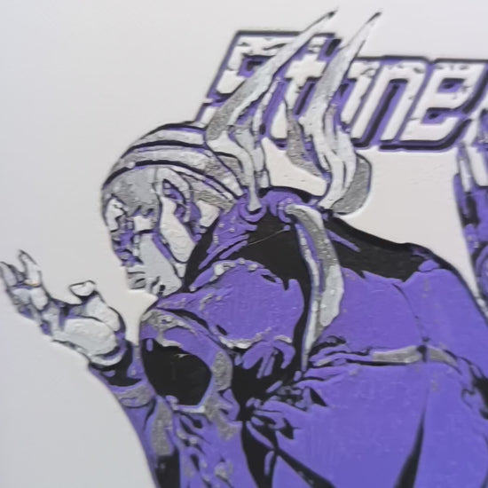 Sublimez votre espace avec cette magnifique plaque décorative mettant en scène Enrico Pucci et son Stand Whitesnake de JoJo's Bizarre Adventure Part 6: Stone Ocean, avec le texte emblématique "Whitesnake". Design exclusif 3DNoSekai en violet et blanc sur fond blanc avec effet relief.