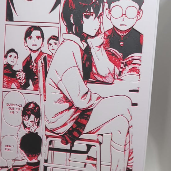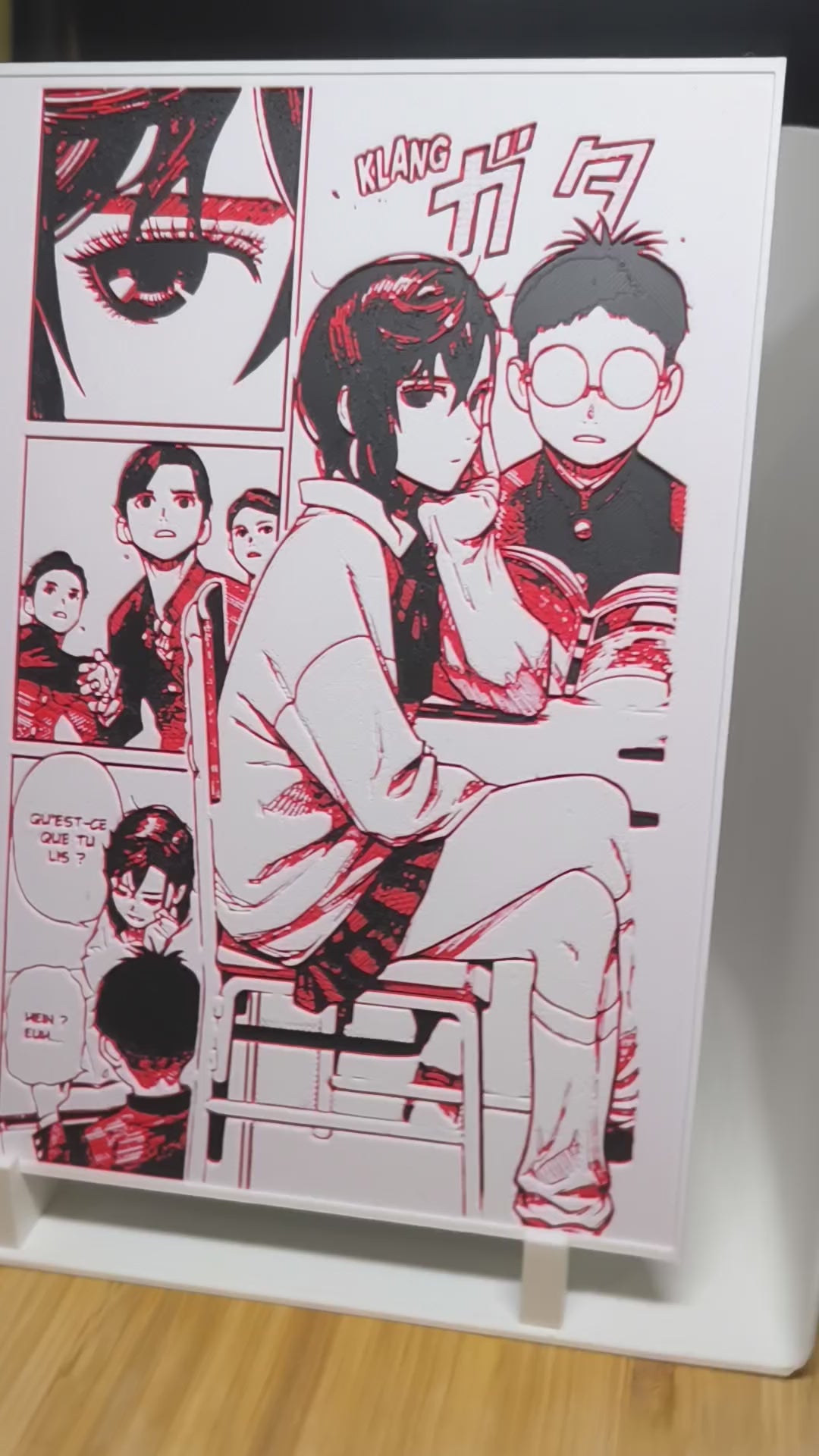 Capturez l'intensité de la relation entre Okarun (Ken) et Momo avec cette décoration 3D au design exclusif 3DNoSekai mettant en scène une planche emblématique du manga.