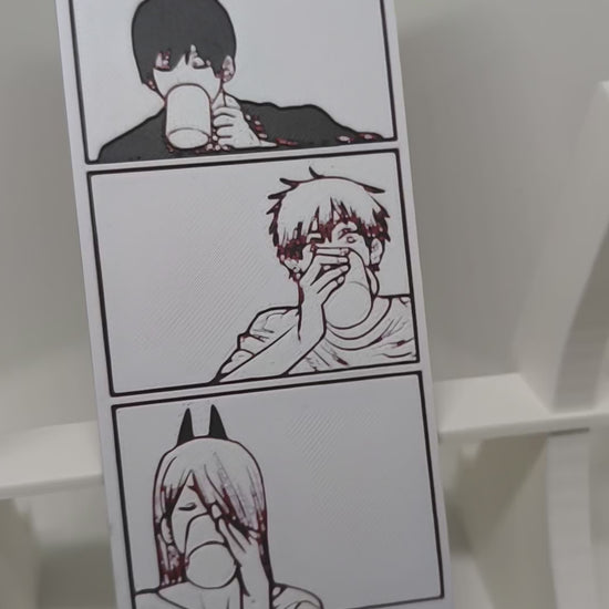 Découvrez ce marque-page 3D culte mettant en scène le mème iconique d'Aki, Denji et Power de Chainsaw Man ! Fabriqué en France avec du PLA de haute qualité, ce marque-page capture parfaitement cette scène hilarante en trois cases qui a conquis les fans du monde entier.