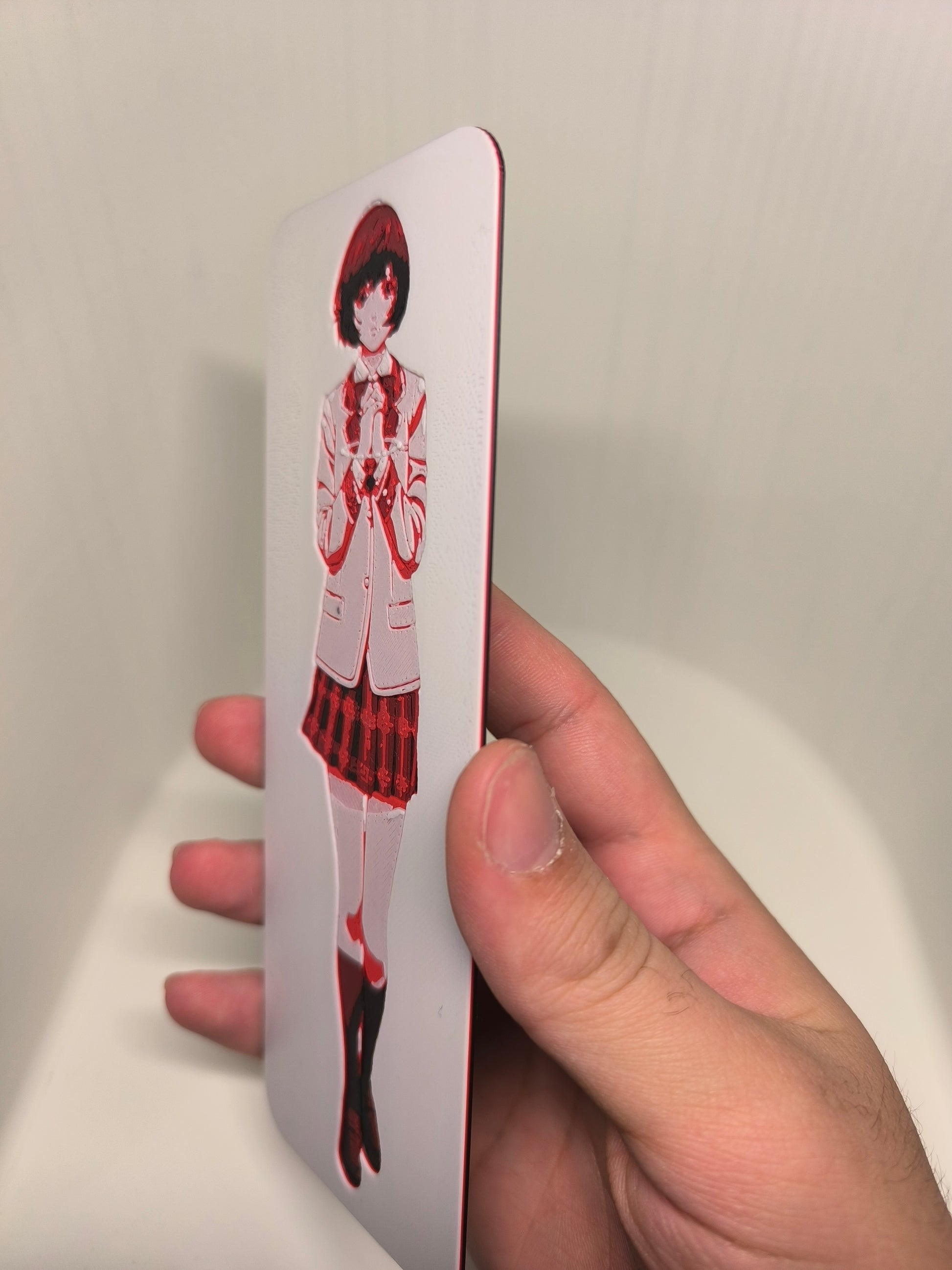 Ne perdez plus jamais votre page avec ce magnifique marque-page mettant en scène Saki Hanakago de Platinum End, dans son design exclusif 3DNoSekai aux tons roses et rouges.