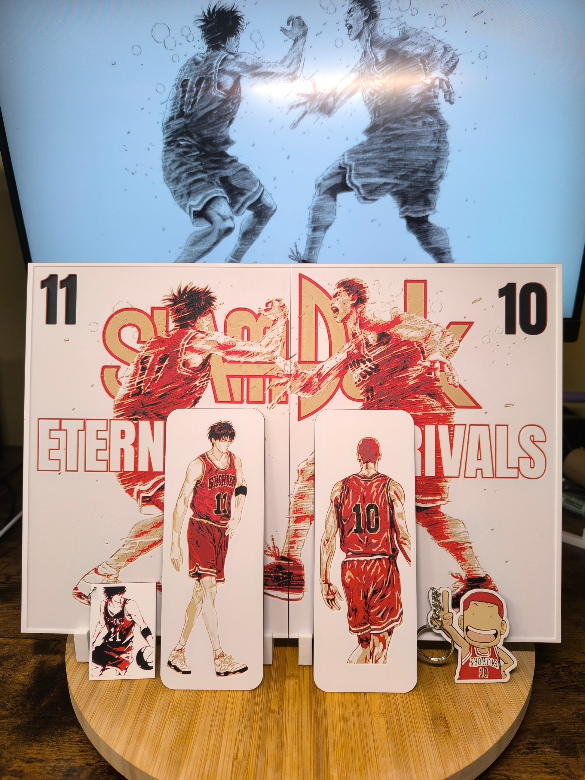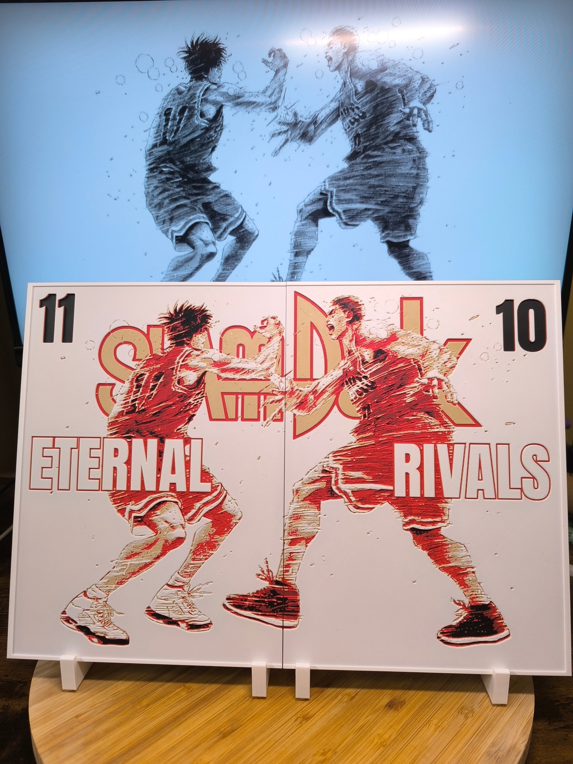- 🎨 1 Double Plaque Décorative (36 cm x 25 cm) : Design "Eternal Rivals" avec Rukawa et Sakuragi face à face