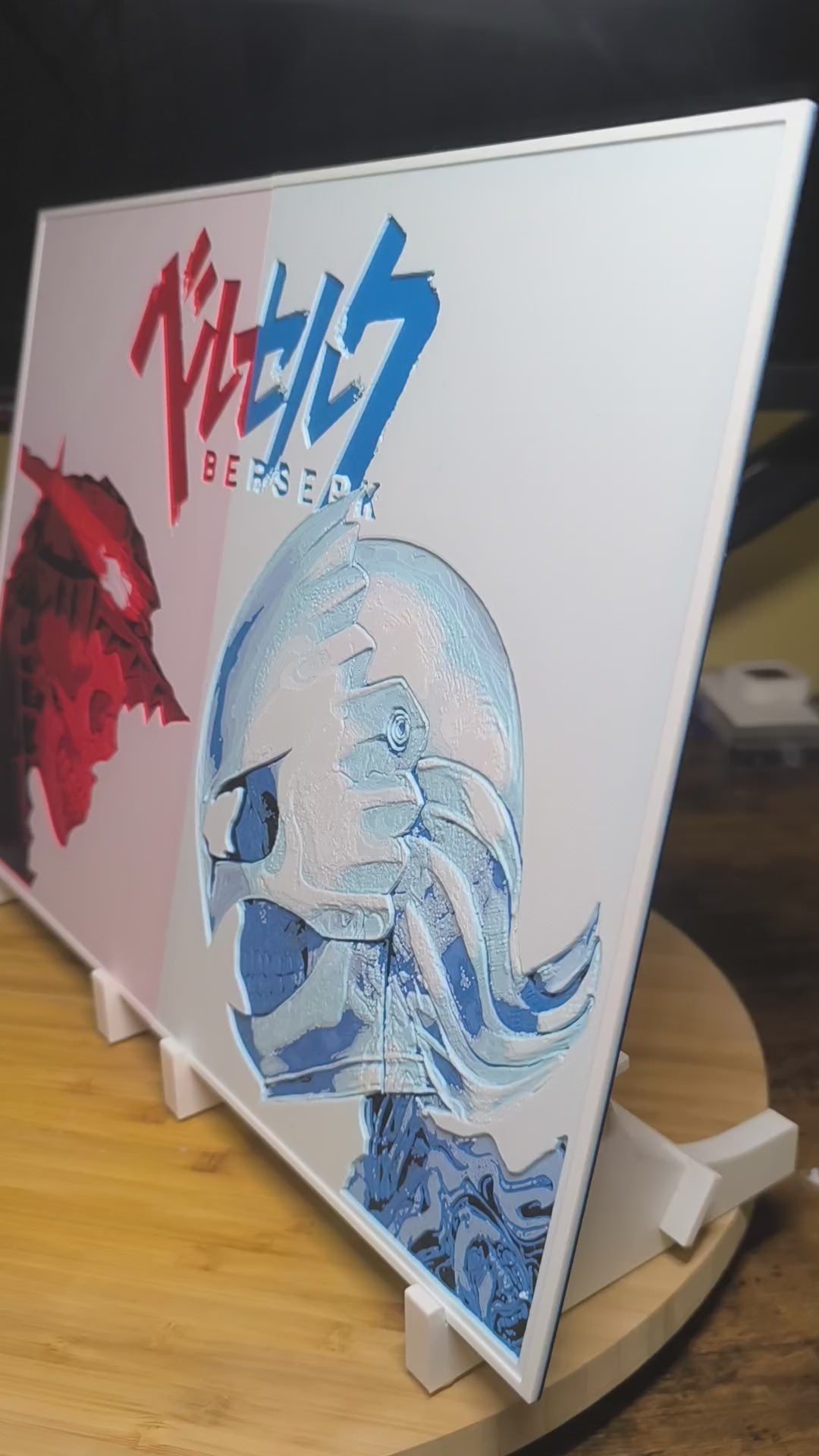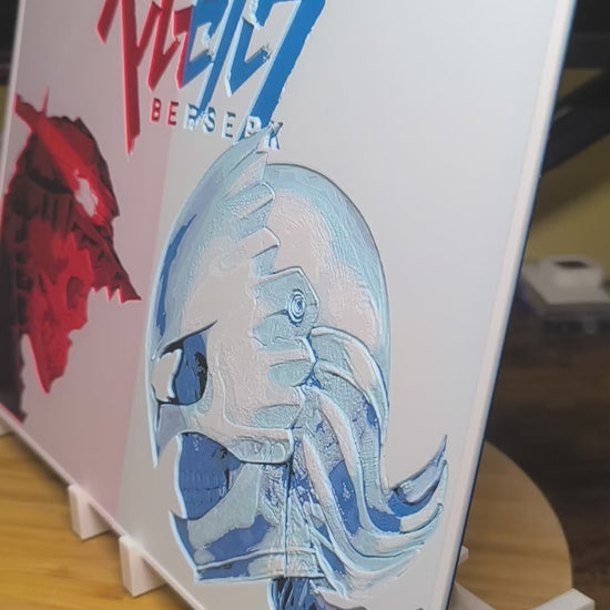 L'Offre Ultime pour les vrais fans : Découvrez une fresque murale géante en relief 3D opposant Guts le guerrier noir à Griffith le Faucon blanc. Ce n'est pas une affiche papier, mais une double œuvre rigide et texturée que vous pouvez sentir au toucher.